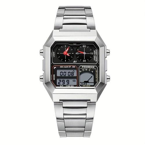 Descubra a elegância e a funcionalidade no seu pulso com o relógio eletrónico de alta qualidade. Este clássico e moderno acessório é mais do que apenas um dispositivo de controle de tempo; ele funde estilo e inovação. Com um display duplo que integra funcionalidade analógica e digital, você permanece conectado ao mundo ao mesmo tempo que exibe um estilo sofisticado.