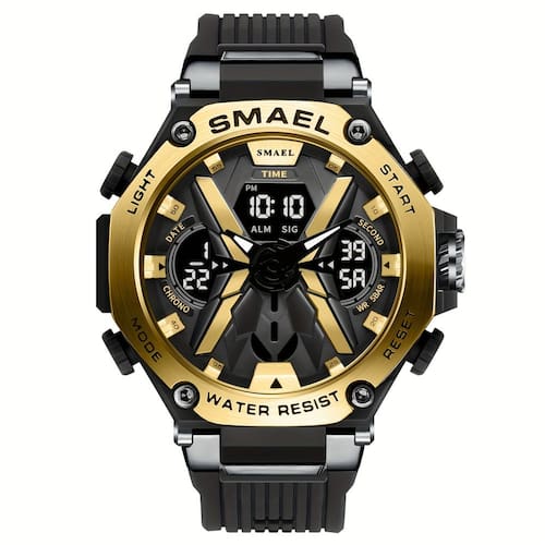 Robusto e confiável, o movimento de dupla exibição digital é acionado eletronicamente, oferecendo precisão e durabilidade. Além disso, é à prova d'água até 5ATM, permitindo que você mergulhe de cabeça na aventura sem se preocupar com danos. Equipado com uma conveniente luz noturna e um botão de fácil acesso, este relógio permanece funcional até mesmo nas condições de iluminação mais desafiadoras.