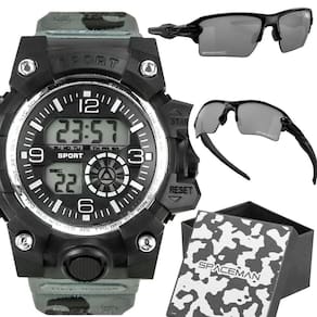 Relogio digital masculino prova dagua + oculos sol + caixa Kit Masculino Orizom Spaceman: Relógio Digital, Óculos de Sol e Caixa Temática Chegou o kit masculino que vai transformar o visual e a rotina de qualquer homem O relógio digital Orizom Spaceman, com seu design camuflado único e resistência à prova d'água, é a escolha perfeita para os aventureiros urbanos que não abrem mão de estilo e funcionalidade. Combine isso com o par de óculos de sol premium Orizom Spaceman X, feito em acetato com proteção UV, e tenha a de conforto e proteção para os olhos em qualquer atividade ao ar livre. E para completar, a caixa temática de exército dá aquele toque de aventura e estilo militar que vai encantar qualquer presenteado. Se você quer surpreender alguém especial com um presente de alta qualidade e personalidade, este é o kit ideal Não perca a chance de dar um presente inesquecível. Adquira já o Kit Masculino Orizom Spaceman e faça a diferença Marca: Não Informado