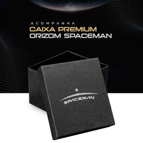 E não para por aí Este relógio acompanha uma caixa ultra premium exclusiva da linha Spaceman da Orizom, garantindo segurança ao acomodar o relógio e valorizando sua apresentação. Ideal para preservar o produto e também perfeito para presentear com estilo e sofisticação.