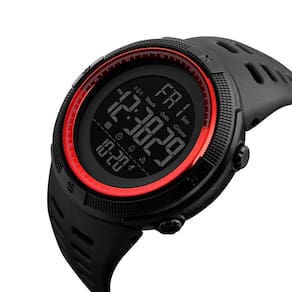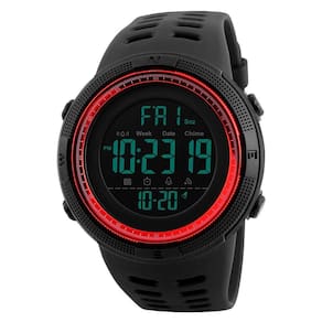 Relógio digital masculino para esportes ao ar livre à prova d'água, cronômetro militar, contagem regressiva, alarme automático de data (SK 1251 preto e vermelho)