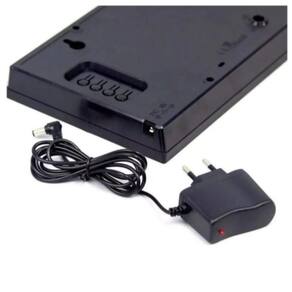 Quatro botões na parte traseira para definir a hora e data. Ele também tem um despertador. Memória embutida para uma falha de energia para manter os dados. Adaptador de operação 110- 220V AC - 5V 500mAh.