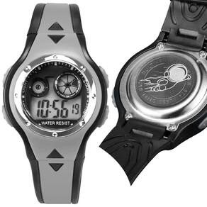 Relogio Digital Silicone Qualidade Premium Criança Infantil Cinza Esportivo Menino Alarme relógio Digital Infantil Orizom Kids Cinza e Preto - Tema Mini Astronautas