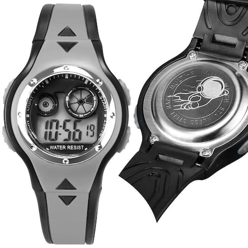 Relogio Digital Silicone Qualidade Premium Criança Infantil Cinza Esportivo Menino Alarme relógio Digital Infantil Orizom Kids Cinza e Preto - Tema Mini Astronautas