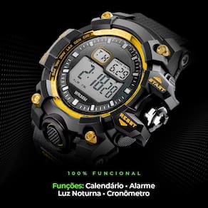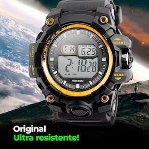 Relogio digital vermelho silicone prova dagua corrida grande Relógio digital masculino orizom spaceman preto com detalhe dourado - resistente à água