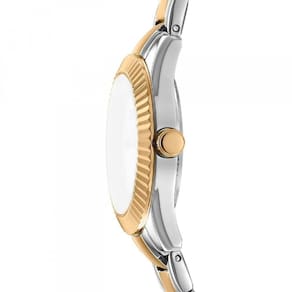 Elegância compacta e contemporânea definem o Relógio Donna Karan. Com caixa de cerca de 26 mm em aço dourado, pulseira bicolor prata e dourada e mostrador champagne, este modelo feminino equilibra delicadeza e presença. Equipado com mecanismo de quartzo, vidro mineral resistente e resistência à água de 50 m, ele une beleza e funcionalidade para o uso cotidiano ou ocasiões especiais.