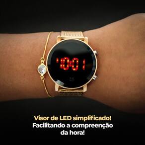 Relogio Dourado Led Silicone + Relogio Feminino Digital Aço Presente Pulseira Ajustavel Kit Duplo Relógios Orizom Maria LED Dourado e Prata - Elegância e Tecnologia em Dobro