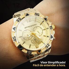 Relogio dourado masculino + cordão + pulseira aço inoxidável Kit Presente Masculino Orizom Spaceman - Relógio Analógico Dourado + Corrente, Pingente e Pulseira em Aço Inoxidável + Óculos de Sol Premium Surpreenda com o Kit Presente Masculino Orizom Spaceman Este conjunto exclusivo combina elegância, estilo e qualidade incomparável. - Relógio Masculino Analógico Orizom Spaceman: Desfrute da sofisticação do design dourado e banhado em aço inoxidável, para durabilidade e resistência impecáveis. - Corrente Grumet Banhada em Aço Inoxidável: Aproximadamente 60cm de pura elegância. O complemento perfeito para qualquer visual refinado. - Pingente Cruz Banhado em Aço Inoxidável: Adicione significado e estilo ao seu look. Um toque de personalidade e fé que não passa despercebido. - Pulseira Grumet Banhada em Aço Inoxidável: Aproximadamente 25cm de pura sofisticação. O toque final para um visual completo e elegante. - Óculos de Sol Orizom Spaceman X: Proteção premium para seus olhos com estilo incomparável. e hastes em acetato, lentes com proteção UV para conforto e proteção em grande estilo. Presenteie com classe e estilo Este kit completo é a escolha ideal para surpreender o homem especial em sua vida. Perfeito para aniversários, datas comemorativas ou para mostrar seu carinho. Garanta já o seu conjunto de elegância e estilo exclusivo Orizom Spaceman Marca: Não Informado