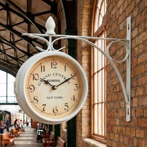 1x Relógio Branco De Parede Dupla Face Estação De Trem Terminal New York