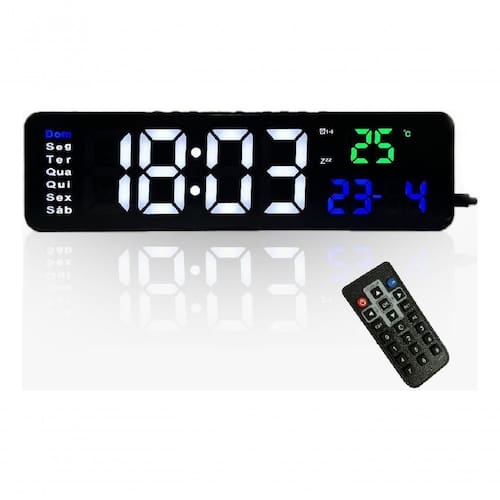- Possui controle remoto para configurar e deixar sua vida mais fácil, não precisando tirar o relógio da parede para mexer.