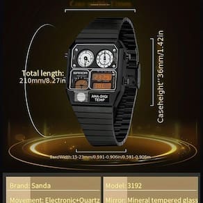 Descubra o design moderno e arrojado do Relógio Eletrônico de Moda SANDA, ideal para quem valoriza funcionalidade e estilo. Este relógio, com seu mostrador quadrado e pulseira de aço inoxidável, é a combinação perfeita de sofisticação e praticidade. Equipado com múltiplas funções como medições de temperatura e cronômetro, é a escolha ideal para um estilo de vida ativo e moderno. Feito para impressionar, o relógio SANDA é mais do que um acessório: é uma extensão de sua personalidade vibrante e tecnológica.