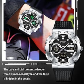 Descubra o relógio eletrónico desportivo para homem, uma verdadeira fusão de tecnologia e estilo. Este relógio é a escolha ideal para aqueles que procuram um acessório que vá além da mera contagem do tempo. Com um design robusto e moderno, ele se adapta perfeitamente a diferentes ocasiões, sejam elas desportivas ou casuais. Seja na escola, em férias ou até mesmo em celebrações de aniversário, este relógio se destaca como uma peça essencial no seu dia a dia.
