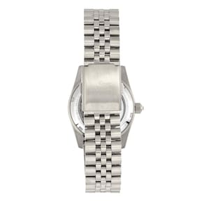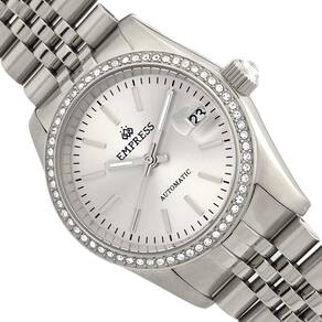 Mostrador prateado aprimorado por ponteiros prateados. Caixa de aço inoxidável prateado com uma pulseira de aço inoxidável prateada. Movimento automático. Resistência à água até 50 metros. Bisel fixo. Cristal mineral resistente a arranhões. Parte traseira transparente. Fecho de botão de pressão. Tamanho da caixa: 37 mm x 13 mm. Pulseira de 20 mm x de comprimento. Relógio Empress EMPEM1501 Constance.