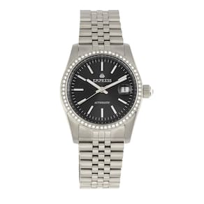 Mostrador Sunray preto com acabamento escovado aprimorado por ponteiros prateados. Caixa de aço inoxidável prateado com uma pulseira de aço inoxidável prateada. Movimento automático. Resistência à água até 50 metros. Bisel fixo. Cristal mineral revestido de safira. Esqueleto transparente com fundo transparente. Implantação com fecho de liberação de botão. Coroa com ponta de joia. Tamanho da caixa: 37 mm x 13 mm. Pulseira de 20 mm x de comprimento. Relógio Empress EM1502 Constance.
