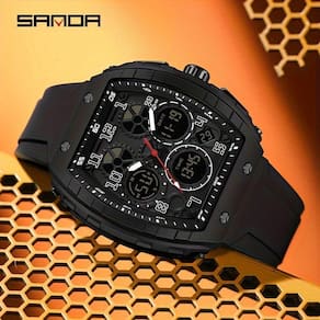 Você está sempre em busca de um relógio que acompanhe seu estilo de vida ativo e moderno? Não procure mais! O Relógio Esportivo SANDA Masculino é o acessório perfeito para quem não abre mão de estilo e funcionalidade. Este relógio é uma combinação perfeita de resistência e inovação com sua dupla exibição, permitindo que você acompanhe tanto o tempo digital quanto analógico. Seu design robusto, com caixa de liga de zinco em formato de barril, adiciona aquele toque extra de ousadia que está super em alta. Além disso, seu nível de resistência à água de até 50 metros garante que ele aguente qualquer aventura, desde uma corrida debaixo da chuva até um mergulho rápido na piscina.