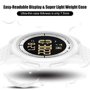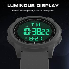 Descrição do produto Nosso novo design, round case encontra a próxima geração de esportes de moda, o que faz nosso relógio com estilo de moda casual para o seu uso diário. Artesanato de correia de borracha lisa, não arranhar seu pulso ou pano, vai muito bem com qualquer roupa e qualquer ocasião. Você pode ajustar o comprimento da pulseira mais longa para 9,8 polegadas de acordo com sua própria escala também. Além disso, escolher nossos relógios não é apenas para um relógio, o que significa uma melhor qualidade e depois dos serviços também. Características do produto **MOVEMENT: Design minimalista casual de moda com relógios esportivos digitais black case . Este relógio de pulso do cavalheiro da moda será muito adequado para qualquer ocasião.. **Resistente à água a 50M: adequado para nadar em águas rasas e tomar banho frio, mas mantenha-se afastado da água quente e do vapor, não adequado por longo tempo atividades subaquáticas, como mergulho. **A cara do relógio é muito clara, agradável e fácil de ler. lente acrílica/vidro mineral Hardlex. **Este relógio é encantador para todas as ocasiões, como turismo, mesa, feriado ou festa diária. Forma do caso do parâmetro: Caixa Redonda Material: resina/aço de liga: 39g / 1.4 OZ - 57g / 2.0OZ Espessura da caixa: 8mm /0,31 em caso de diâmetro: 43mm/1.69 em largura de banda:22mm/0,86em comprimento da banda:250mm / 9.84em Nossos serviços --Com 15 dias de recarga, 30 dias de política de substituição e 1 ano após o serviço de vendas. --Se você tiver algum outro problema, por favor, sinta-se livre para entrar em contato conosco, responderemos imediatamente com sua satisfação. CUIDADOS RECOMENDADOS*** 1: Limpar por um pano macio em bases regulares é altamente recomendado. 2: O contato constante com a água pode reduzir a durabilidade do relógio. 3: Por favor, NÃO pressione nenhum botão debaixo d'água e AVIOD o uso em temperatura extrema quente ou fria. Pacote inclui: 1* Relógio digital 1* Cartão de garantia 1* Caixa de presente 1*Manual