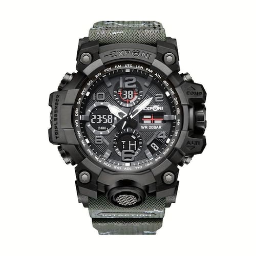 Este relógio esportivo masculino é a escolha perfeita para os aventureiros modernos que buscam combinar estilo e funcionalidade. Com seu duplo display, ele oferece uma interface detalhada que garante fácil leitura do horário em qualquer situação. A luz noturna LED é um recurso essencial para aqueles que não se deixam parar pela escuridão, permitindo que você acompanhe seu treino ou atividade ao ar livre sem interrupções. Projetado para resistir aos desafios do vida ativa, este acessório possui recursos adicionais, como cronômetro e alarme, que o tornam indispensável para sua rotina de fitness.