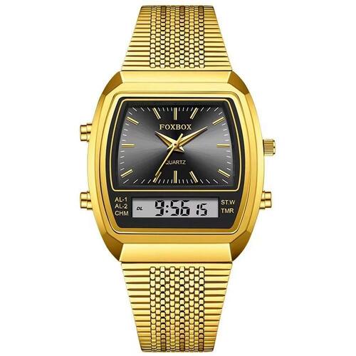 Cada detalhe foi cuidadosamente pensado para atender às suas necessidades. Equipado com uma tela de LED que oferece clareza incomparável, mesmo em condições de baixa luz, e um revestimento à prova d'água que garante proteção até 3 Bar de profundidade. A pulseira de aço inoxidável não só proporciona um ajuste confortável, mas também exala uma durabilidade excepcional. Este relógio de moda não é apenas um acessório, mas sim, um símbolo de sofisticação para o homem atual.