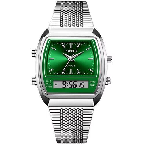 Cada detalhe foi cuidadosamente pensado para atender às suas necessidades. Equipado com uma tela de LED que oferece clareza incomparável, mesmo em condições de baixa luz, e um revestimento à prova d'água que garante proteção até 3 Bar de profundidade. A pulseira de aço inoxidável não só proporciona um ajuste confortável, mas também exala uma durabilidade excepcional. Este relógio de moda não é apenas um acessório, mas sim, um símbolo de sofisticação para o homem atual.