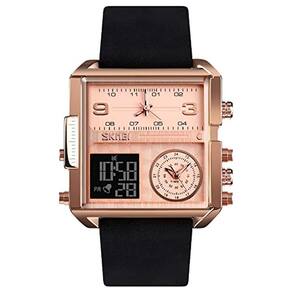 Relógio esportivo digital masculino SKMEI, luz de fundo quadrada, tela grande, relógio masculino com vários fusos horários, relógio analógico digital à prova d'água para homens (tamanho pequeno 41 mm)