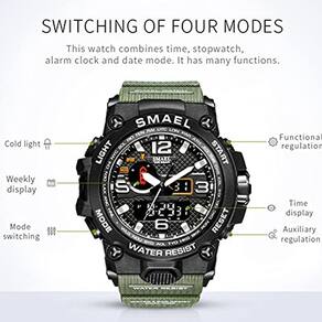 Relógio esportivo digital masculino Weijie Sports Outdoor 50M, cronógrafo militar impermeável com data, relógio luminoso multifuncional (preto e branco), 8040