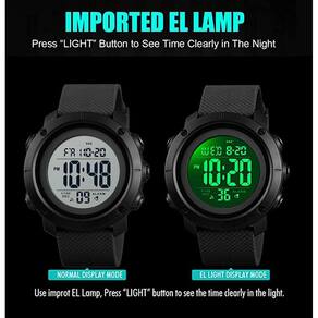 ? Multifunções: cronômetro/contagem regressiva, luz de fundo, fusos horários duplos, alarme independente, calendário, à prova de poeira. As funções são úteis para exercícios, acampamentos ou academias.