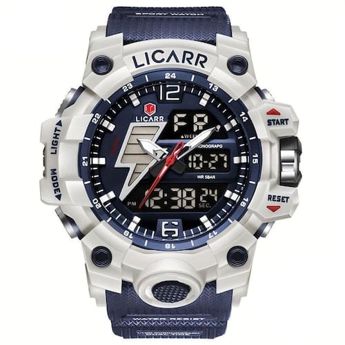 Imagine um relógio que combina inovação tecnológica com um estilo audacioso e moderno. Este relógio desportivo de exibição dupla para homens é a definição perfeita de uma peça atraente e funcional. Com um design que une o clássico ao contemporâneo, conta com a resistência necessária para acompanhar qualquer aventura, seja ao ar livre ou em ambientes mais urbanos, sem comprometer o estilo. Suas cores fortes, preto e vermelho, destacam a robustez do produto, enquanto a pulseira de borracha amplia o conforto e a praticidade.