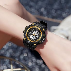 Relógio esportivo feminino digital à prova d'água Este relógio esportivo feminino digital à prova d'água é projetado para versatilidade, durabilidade e estilo. Com uma caixa de ABS texturizada e um espelho de acrílico resistente a arranhões, este relógio oferece leituras claras e resiste ao desgaste diário. A pulseira de TPU macia e respirável garante conforto, enquanto várias funções como exibição luminosa, cronômetro, calendário e alarme proporcionam conveniência. A pulseira de TPU macia e respirável garante conforto, enquanto várias funções como exibição luminosa, cronômetro, calendário e alarme proporcionam conveniência. À prova d'água até 50 metros, este relógio está pronto para lavar as mãos, chuveiros frios e um estilo de vida ativo. Disponível em uma variedade de cores vibrantes, é perfeito para adicionar um pouco de energia a qualquer roupa. Especificações: Caixa do relógio: ABS Pulseira de relógio: pulseira TPU Tipo de fecho da pulseira: fivela Diâmetro da caixa: 46 mm Espessura da caixa: 16 mm Largura da pulseira: 18-22 mm Comprimento do relógio: 220 mm Circunferência do pulso: mín. 135 mm/máx. 200 mm Peso: cerca de 44 g Destaques: Disponível em cores vibrantes, com uma variedade de estilos para combinar com diferentes gostos (de doce a frio) Resistência à água de 50 metros para proteção diária confiável **Observação**: *Não aperte os botões debaixo d'água. * Evite o uso em temperaturas extremamente quentes ou frias. * Se houver névoa ou gotículas dentro da superfície do relógio, com o fabricante imediatamente para manutenção para evitar corrosão por umidade dos componentes internos. *Muito contato com a água encurtará a vida útil do relógio. - ?Seleção de cores modernas?: Este relógio vem em uma variedade de cores vibrantes e atraentes, facilitando a combinação com diferentes roupas e humores. Se você está procurando algo divertido ou ousado, há uma opção de cor para todos os estilos, adicionando um toque moderno a qualquer visual. - ?Funcionalidade de exibição dupla?: oferecendo o melhor dos dois mundos, este relógio possui telas analógicas e digitais. Ele não apenas mostra a hora, mas também inclui recursos práticos como alarme, cronômetro e calendário, tornando-o versátil para tarefas e atividades diárias. - ?Design leve e durável?: Construído com uma caixa de ABS resistente e uma pulseira de TPU confortável, este relógio foi projetado para uso duradouro. Sua estrutura leve garante conforto no pulso, seja para passeios casuais ou atividades intensas ao ar livre. - ?À prova d'água e à prova de choque?: com resistência à água de até 50 metros, este relógio é adequado para atividades diárias como lavar as mãos e chuveiros frios, oferecendo desempenho confiável em condições úmidas. É construído para ser à prova de choque e resistente a quedas, aumentando assim sua durabilidade. Você pode usá-lo com confiança sem se preocupar com danos. - ?Presente e serviço perfeitos?: uma opção de presente elegante e funcional para qualquer ocasião, de aniversários a feriados. Garantia de 12 meses. Garantimos a você garantia de qualidade e excelente atendimento ao cliente. Sinta-se à vontade para entrar em contato conosco para qualquer dúvida, faremos o nosso melhor para ajudá-lo.