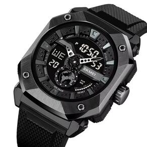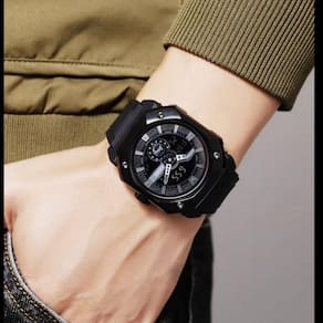 Preparado para acompanhar o seu ritmo, o cronômetro surge como uma opção versátil para homens que levam uma vida repleta de atividades. Este relógio esportivo combina funcionalidade avançada com design moderno, oferecendo uma tela analógica-digital que facilita a leitura de tempo mesmo em ambientes escuros, graças à sua prática luz LED. Com resistência à água de até 5 bar, você pode se movimentar sem preocupações, seja na academia, ao ar livre ou em atividades casuais.