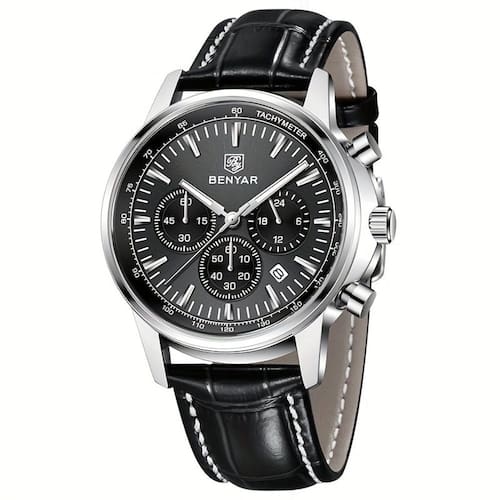 Especificações: [Material da correia] A pulseira de couro PU não só garante durabilidade, mas também oferece um toque suave e confortável, ideal para quem aprecia um acessório funcional e estiloso.[Caixa resistente] Com a caixa de liga de zinco, você dispõe de uma peça robusta que protege o mecanismo interior, garantindo longevidade e confiança em qualquer situação.[Oferta de precisão] O movimento de quartzo assegura que você esteja sempre no tempo certo, com a precisão típica dos relógios de alto desempenho.[Recursos especiais] Desfrute do cronógrafo, calendário e exibição de data integrados, proporcionando praticidade e versatilidade para o seu cotidiano.[Estilo desportivo] Combina elegância com um toque casual, tornando-o perfeito para quem busca um visual atraente sem abrir mão da funcionalidade.