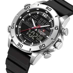 Este relógio esportivo masculino com dupla exibição é a fusão perfeita de estilo e funcionalidade, ideal para aqueles que não abrem mão de estar na moda enquanto mantêm a eficiência nos compromissos diários. Com um design robusto e sofisticado, ele se destaca por sua versatilidade, sendo um acessório indispensável para o homem moderno e ativo.
