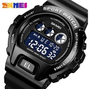 Marca: Skmei Tipo de item: Relógios de pulso digitais Movimento: Movimento Digital Gênero: Masculino Estilo: Esporte, Moda, Casual Formato da caixa: redondo Tipo de material da janela do mostrador: Resina Material da caixa: Plástico Tipo de material da pulseira: gel de sílica Tipo de fecho: Fivela Diâmetro do mostrador: 50 mm Espessura da caixa: 17 mm Comprimento da pulseira: 255 mm Largura da banda: 22 mm Peso do produto: cerca de 86g Característica: Resistente à água até 50M, Calendário completo, Cronógrafo, Exibição semanal, Display LED, Contagem regressiva. Marca: Não Informado