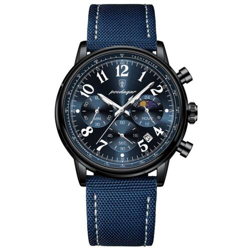 Especificações [Design Moderno]: O mostrador apresenta marcadores de algarismos arábicos que conferem um toque contemporâneo e fácil leitura, ideal para o cotidiano agitado.[Durabilidade Excepcional]: Com espessura de 13mm e um estojo feito em aço inoxidável, este relógio é construído para durar e resistir a desafios.[Funcionalidades Avançadas]: Equipado com cronógrafo, mãos luminosas e data automática, este relógio é mais que um acessório; é um gadget indispensável.[Resistência à Água]: Com resistência de até 3 Bar, este relógio é um verdadeiro companheiro em atividades aquáticas, seja na piscina ou no mar.[Estilo Incomparável]: Feito com pulseira de náilon de alta qualidade, proporciona uma estética esportiva enquanto mantém o conforto e a durabilidade.