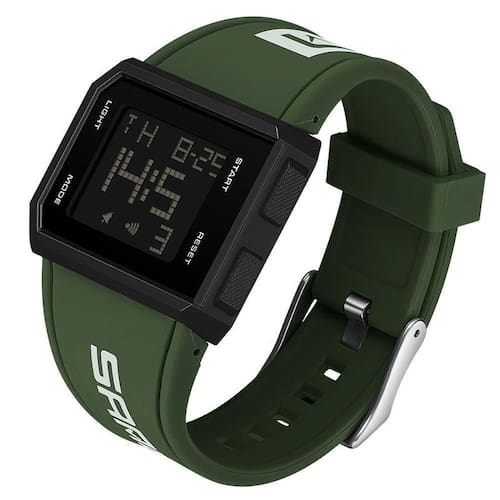 Relógio Esportivo Quadrado Clássico, Despertador Multifuncional, Cronômetro Verde