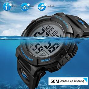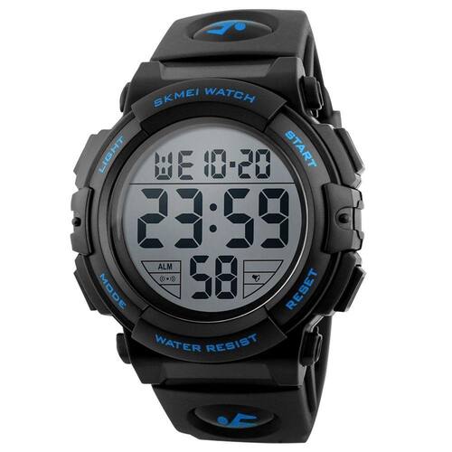 Relógio esportivo digital masculino, relógio de pulso militar eletrônico LED impermeável com alarme, cronômetro, calendário, data, janela — azul