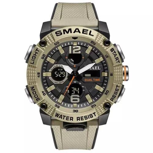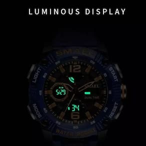Transforme a forma como você percebe o tempo com o relógio militar digital SMAEL 8039, uma verdadeira obra-prima de engenharia e design esportivo. Este relógio não é apenas um acessório, é uma extensão do seu estilo de vida ativo, oferecendo funcionalidades que vão muito além de um simples marcador de horas. Totalmente à prova d'água até 50m, ele é o companheiro ideal para as suas aventuras, sejam elas em terra ou nas profundezas aquáticas. Com um display analógico-digital elegante e resistente, o SMAEL 8039 é o equilíbrio perfeito entre performance e estética.