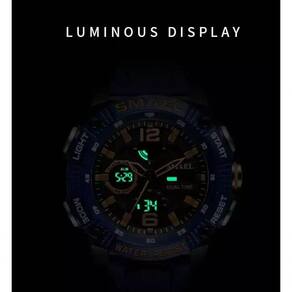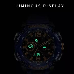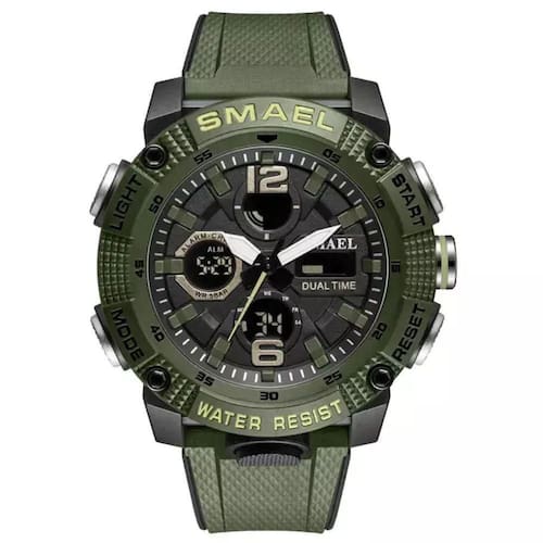 Transforme a forma como você percebe o tempo com o relógio militar digital SMAEL 8039, uma verdadeira obra-prima de engenharia e design esportivo. Este relógio não é apenas um acessório, é uma extensão do seu estilo de vida ativo, oferecendo funcionalidades que vão muito além de um simples marcador de horas. Totalmente à prova d'água até 50m, ele é o companheiro ideal para as suas aventuras, sejam elas em terra ou nas profundezas aquáticas. Com um display analógico-digital elegante e resistente, o SMAEL 8039 é o equilíbrio perfeito entre performance e estética.