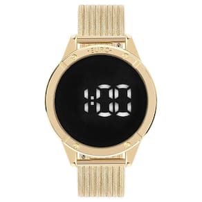 Relógio Euro Fashion Fit Touch Feminino Dourado Eubj3912aa/4f Eubj3912aa/4f Relógio Euro Fashion Touch feminino, digital, redondo, com caixa em metal e pulseira mesh em banho dourado. A coleção Fashion Fit ganha a inovação do mostrador touchscreen com design sofisticado e estilo marcante. Moderno e estilo, nesse relógio a hora aparece com um simples toque. Resistente à água em até 5 ATM. Ref. EUBJ3912AA/4F. Cor da Caixa - Dourado Material da Caixa - Metal Formato da Caixa - Redondo Material da Pulseira - Aço Tipo de Fecho - Fivela Formato da Caixa - Redondo Garantia - 12 meses Cor do Mostrador - Preto Cor da Pulseira - Dourado Relógios - Sim Largura da Caixa (cm) - 4,3 Resistente a Água - 5 ATM Descrição da Resistência - A resistência deste produto permite apenas respingos de água ao lavar as mãos. Não utilizar este produto em qualquer situação que haja contato direto com água. meli_title - Relógio Digital Led Feminino Euro Dourado A Prova D'Água Modelo_ML - Relógio Digital Feminino Euro Led EUBJ3912AA/4F com Pulseira de Aço Dourado Caixa de 43 Milímetros Vidro de Cristal Mineral A Prova D'água até 50 Metros e 12 Meses de Garantia em Toda Rede de Assistência Technos no Brasil. Cor - Dourado Gênero - Feminino