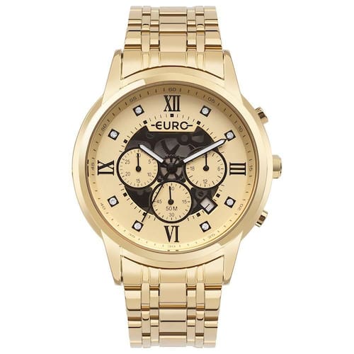 Relógio Euro Feminino Big Case Dourado - Eujs26aa/4d Eujs26aa/4d Novidade na coleção Big Case. Reconhecida por suas caixas maiores, essas novas versões possuem caixa tamanho 44mm com maquinismo aparente no mostrador e pulseira de 7 links em banho dourado Cor da Caixa - Dourado Material da Caixa - Aço Formato da Caixa - Redondo Material da Pulseira - Aço Tipo de Fecho - Trava Lateral Garantia - 12 meses Cor do Mostrador - Dourado Cor da Pulseira - Dourado Largura da Caixa (cm) - 4,4 Resistente a Água - 5 ATM Descrição da Resistência - A resistência deste produto permite apenas respingos de água ao lavar as mãos. Não utilizar este produto em qualquer situação que haja contato direto com água. plaintext_description_meli - Relógio Euro Feminino Big Case Dourado - EUJS26AA/4DNovidade na coleção Big Case. Reconhecida por suas caixas maiores, essas novas versões possuem caixa tamanho 44mm com maquinismo aparente no mostrador e pulseira de 7 links em banho dourado meli_title - Relógio Euro Feminino Big Case Dourado - EUJS26AA/4D Modelo_ML - Relógio Euro Feminino Big Case Dourado - EUJS26AA/4D Cor - Dourado Tamanho - Grande Gênero - Feminino