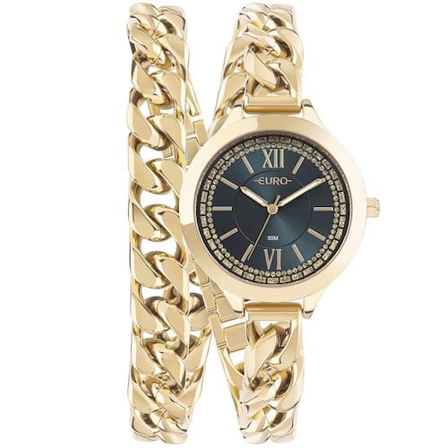 Relógio Euro Feminino Chains Dourado - Eu2035yua/4v Eu2035yua/4v A linha Chains remete a sofisticação da Joalheria ao mundo Euro. Nosso lançamento vem agora com pulseira de duas voltas em correntaria trazendo um ar luxuoso para os relógios. Ideal para as mulheres que gostam de marcar presença em qualquer situação com acessórios mais elegantes.Tamanho máximo: 38cmTamanho mínimo ajustado: 35cm Cor da Caixa - Dourado Formato da Caixa - Redondo Material da Pulseira - Aço Garantia - 12 meses Cor do Mostrador - Preto Cor da Pulseira - Dourado Largura da Caixa (cm) - 3,8 Resistente a Água - 3 ATM meli_title - Relógio Euro Feminino Chains Dourado - EU2035YUA/4V Modelo_ML - Relógio Euro Feminino Chains Dourado - EU2035YUA/4V Cor - Dourado Tamanho - Médio Gênero - Feminino