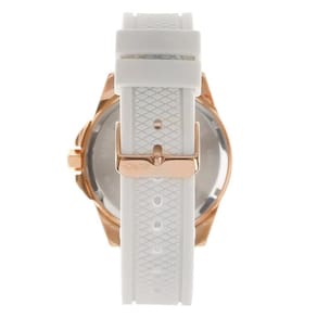 A coleção Big Case ganhou ainda mais brilho: Sua caixa rosé imponente de 46 mm, pulseira de silicone cinza e mostrador rosé, possui detalhe de glitter no index e aplicações de pedras no aro para que nenhuma mulher passe despercebida quando usar esse relógio Cor da Caixa - Rose Gold Formato da Caixa - Redondo Material da Pulseira - Silicone Tipo de Fecho - Fivela Garantia - 12 meses Cor do Mostrador - Prata Cor da Pulseira - Branca com costura cinza Largura da Caixa cm - 4,6 Resistente a Água - 5 ATM Descrição da Resistência - A resistência deste produto permite apenas respingos de água ao lavar as mãos. Não utilizar este produto em qualquer situação que haja contato direto com água.