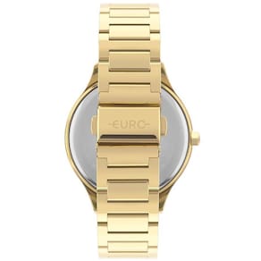 Relógio Euro Feminino Ref: Eu2033bb/4p Brilho Dourado As Cores Estão em Alta A Euro continua seguindo tendências e, dessa vez, trouxe em seus modelos um mostrador com fundo de cores em alta no mundo fashion, que trazem um contraste diferenciado aos produtos. Para a Mulher Euro que prefere um look mais tradicional, essa versão do relógio dourado feminino da Euro é monocromática e apresenta aplicação de detalhes em glitter no index. DESCRIÇÃO DO PRODUTO: Caixa de Metal Pulseira de Aço Vidro de Cristal Mineral Fundo Pressão Resistente à Água Até 5 Atm Diâmetro / Largura da Caixa: 42.00 MM Funções: Analógico Mostrador Preto com Glitter Alimentação do Maquinário: Bateria Maquina Japonesa de 1 Ano Marca: Não Informado