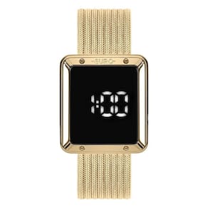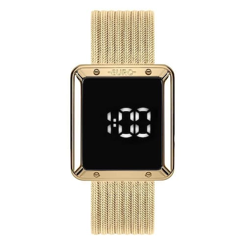 Relógio Euro Feminino Fashion Fit Led Dourado - Eubj3937aa/4f Eubj3937aa/4f Relógio Euro Fashion Fit Led feminino, digital, quadrado, dourado, com caixa de aço inox e pulseira em mesh. Um modelo perfeito para a mulher que gosta de andar sempre na moda, com mostrador em led e pulseira confortável. Resistente à água em até 50 metros. Cor da Caixa - Dourado Material da Caixa - Aço Formato da Caixa - Quadrado Material da Pulseira - Aço Tipo de Fecho - Trava por segurança Formato da Caixa - Quadrado Garantia - 12 meses Cor do Mostrador - Preto Cor da Pulseira - Dourado Relógios - Sim Largura da Caixa (cm) - 3,4 Resistente a Água - 5 ATM Descrição da Resistência - A resistência deste produto permite apenas respingos de água ao lavar as mãos. Não utilizar este produto em qualquer situação que haja contato direto com água. meli_title - Relógio Feminino Euro Lexington Dourado A Prova D'Água Modelo_ML - Relógio Digital Feminino Euro Lexington EUBJ3937AA/4F com Pulseira de Aço Dourado Caixa de 34 Milímetros Vidro de Cristal Mineral A Prova D'água até 50 Metros e 12 Meses de Garantia em Toda Rede de Assistência Technos no Brasil Cor - Dourado Gênero - Feminino