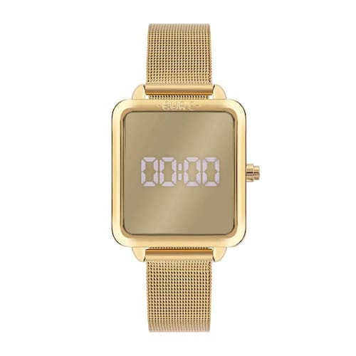 Coleção fashion fit reflexos, best seller da euro agora feita em tamanho menor o modelo apresenta uma caixa midi quadrada de 32mm, banho dourado, pulseira mesh e mostrador led espelhado também dourado seguindo o banho do relógio. Essa combinação é sucesso garantido
