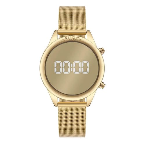 O Relógio Euro FF Reflexos Dourado é uma peça moderna e cheia de atitude. Com caixa de 36mm e pulseira mesh em aço dourado, ele traz um visual monocromático sofisticado que chama atenção pelo brilho e design clean.
