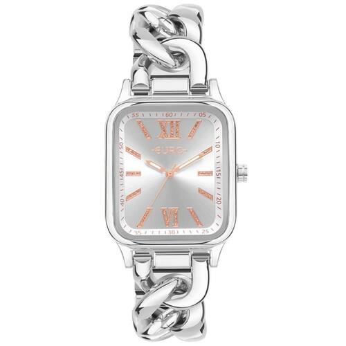 Relógio Euro Feminino Ref: Eu2035yvc/4k Bracelete Retangular Prateado DESCRIÇÃO DO PRODUTO: Caixa de Metal Pulseira de Metal estilo bracelete Vidro de Cristal Mineral Fundo Pressão Resistente à Água Até 3 Atm Diâmetro / Largura da Caixa: 34.00 MM x 38.00 MM Funções: Analógico, Bracelete Mostrador Prateado com Algarismos Romanos e Detalhes em brilho Alimentação do Maquinário: Bateria Maquina Japonesa