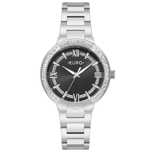 O Relógio Euro Stones é a escolha ideal para quem busca um acessório sofisticado com toque glamouroso. Com caixa de 38mm em metal prateado, o modelo destaca-se pelos detalhes brilhantes ao redor do mostrador, que realçam ainda mais sua presença.