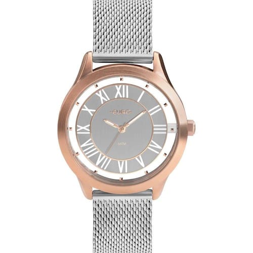 Marca: EuroModelo: EU2039JJ/5KMecanismo: Quartzo;Material da Caixa: Aço;Cor da Caixa: Rosé; Formato da Caixa: Redondo; Display/Mostrador: Analógico, Centro Prateado, Transparente ao Redor;Ponteiros: Rosé;Possui Calendário: Não;Material da Pulseira: Malha de aço;Cor da Pulseira: Prata;Tipo de Vidro: Acrílico;Resistência à Água: 5 ATM (50 Metros)Permite Lavar as Mãos: SimPermite Respingos de Chuva: Sim;Permite Entrar na Piscina: Não;Permite Nadar Com o Relógio: Não;Permite Usar no Mar: Não;Permite Usar no Banho: Não; Diâmetro da Caixa Sem Coroa Aprox.: 42 mm;Diâmetro da Caixa Com Coroa Aprox.: 45 mm;Altura da Caixa Aprox.: 49 mm;Espessura da Caixa Aprox.: 9 mm; Outros Detalhes:Parte Transparente No Mostrador;Pulseira Em Malha De Aço;Logomarca Euro Estampada No Fecho; Garantia de: 1 Ano Com Nota Fiscal Eletrônica