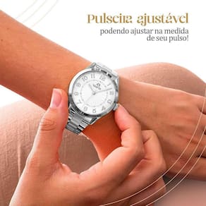 Relogio feminino aço inox + colar strass + caixa presente ajustavel casual social qualidade premium Kit Especial Orizom Maria para Presentear Quem Você Ama