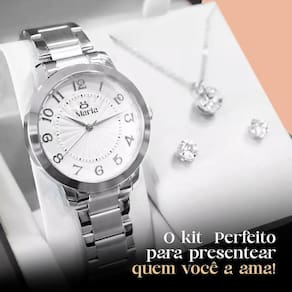 Relogio feminino aço inox + colar strass + caixa presente ajustavel casual social qualidade premium Kit Especial Orizom Maria para Presentear Quem Você Ama